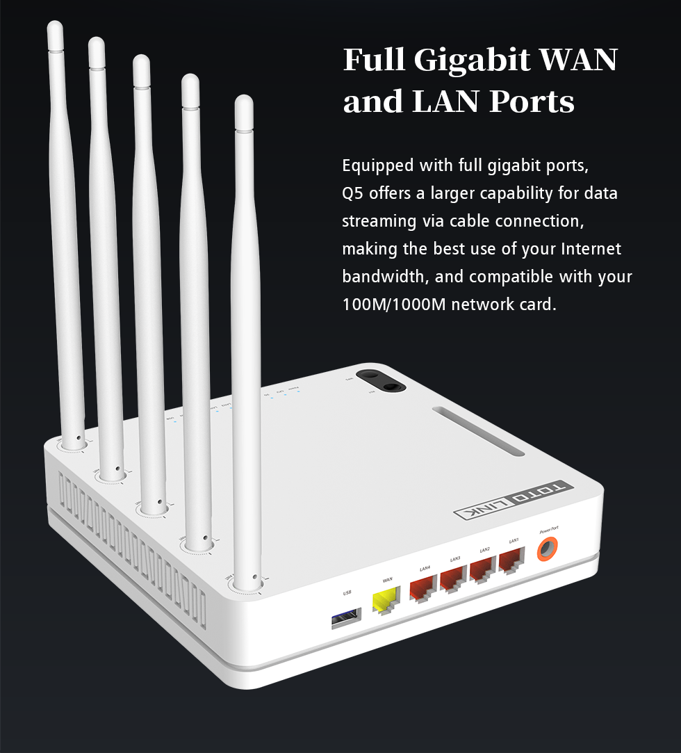 - Five external 5dBi fixed antennas is perfect for long-distance wireless transmission.
