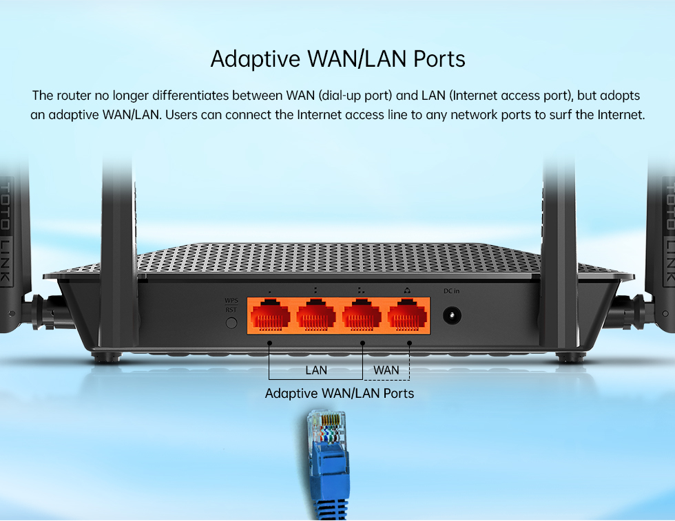 - 1 *2.4G - 1 *5G - 1 *WAN - 3 *LAN - 1 *MESH Blue |
