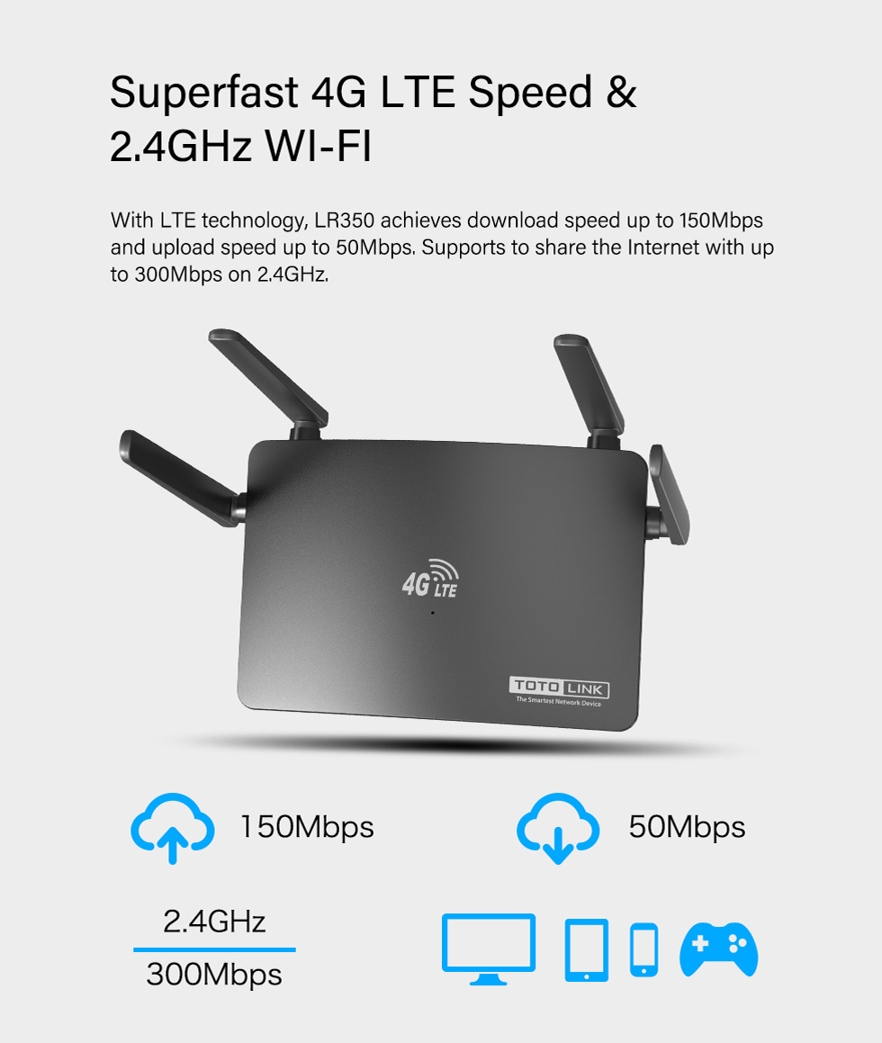 - 2.4GHz: Up to 300Mbps |